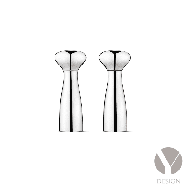 Dette smukke salt og peber-sæt er et regulært stilstudie i underspillet minimalisme. Al pynt er fjernet, så det der står tilbage er en ren organisk form i højglanspoleret rustfrit stål. Form og funktion går op i en højere enhed, og kværnenes ergonomiske udformning gør, at de passer perfekt i hånden. Den justerbare all-grind teknologi sikrer derudover den rigtige størrelse af både salt- og peberkorn.