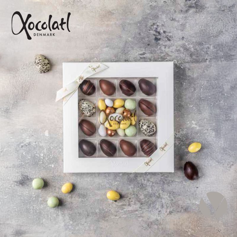 Flot gaveæske med 12 marcipanæg med forskellige smagsvarianter med lakrids, kokos, solbær, citron og klassiske rene marcipanæg med mørk chokolade. Derudover et lækkert dragémix med chokolademandler, chokoladelakrids og sprøde dronningemandler.