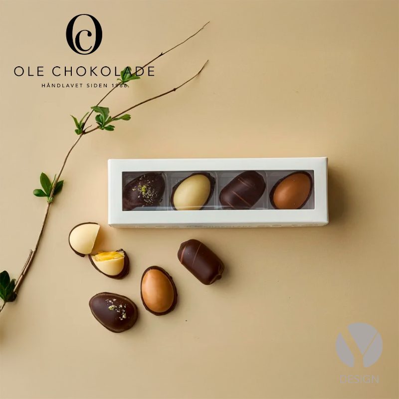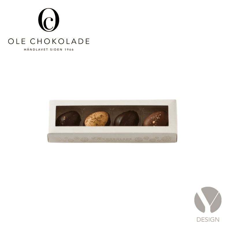 Gaveæsken indeholder 4 mesteræg af 4 forskellige smagsvarianter.