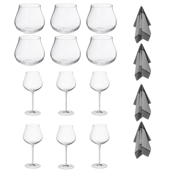 Elegant sæt med 6 rødvins- og 6 vandglas i blyfrit krystalglas. Det minimalistiske, skulpturelle design med tyngde i bunden giver moderne skandinavisk elegance og stabilitet. Perfekt til både hverdag og fest – et stilrent valg, der fuldender borddækningen.