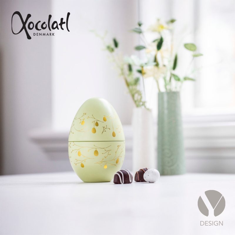 Smukt grønt metalæg fyldt med hele 12 marcipan- og nougatæg. Et mix af f.eks. ren klassisk marcipan, kokosmarcipan, lakridsmarcipan, citron og solbær.