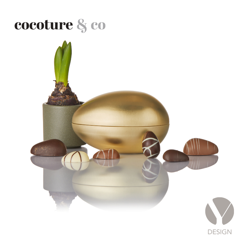 255g fyldte chokoladeæg og marcipanæg i guld Cocoture metalæg