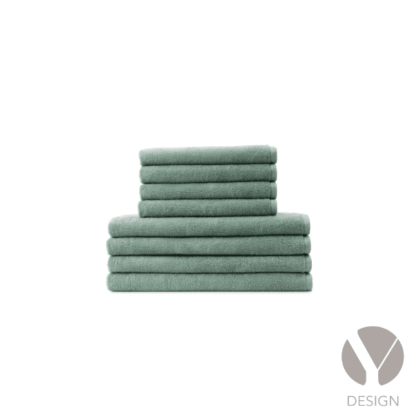 Frottéhåndklæderne er jacquardvævede i 100 % bomuld med løkker af dobbelttvundne og kæmmede garner, der gør dem bløde, slidstærke og glansfulde. Håndklæderne fås i farverne Taupe og Sage Green og er certificeret i henhold til OEKO-TEX® STANDARD 100.