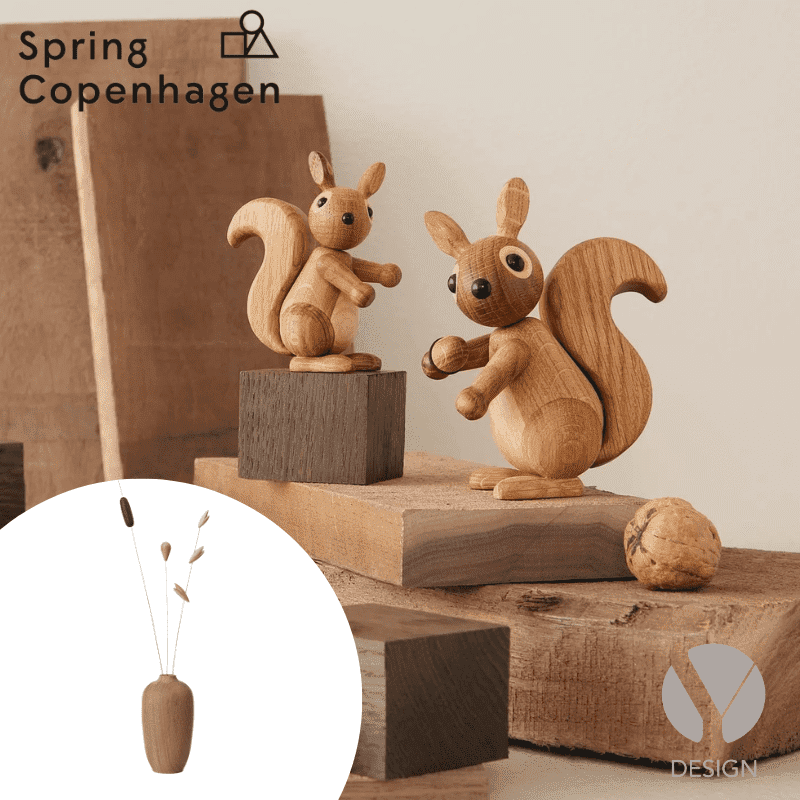 Peanut og Hazel er bedårende egernfigurer designet af Chresten Sommer. De er fyldt med naturtro detaljer og bringer et varmt, dekorativt præg til dit hjem. Begge er håndlavet i FSC®-certificeret eg og ahorn – perfekte til dig, der elsker naturens charme.