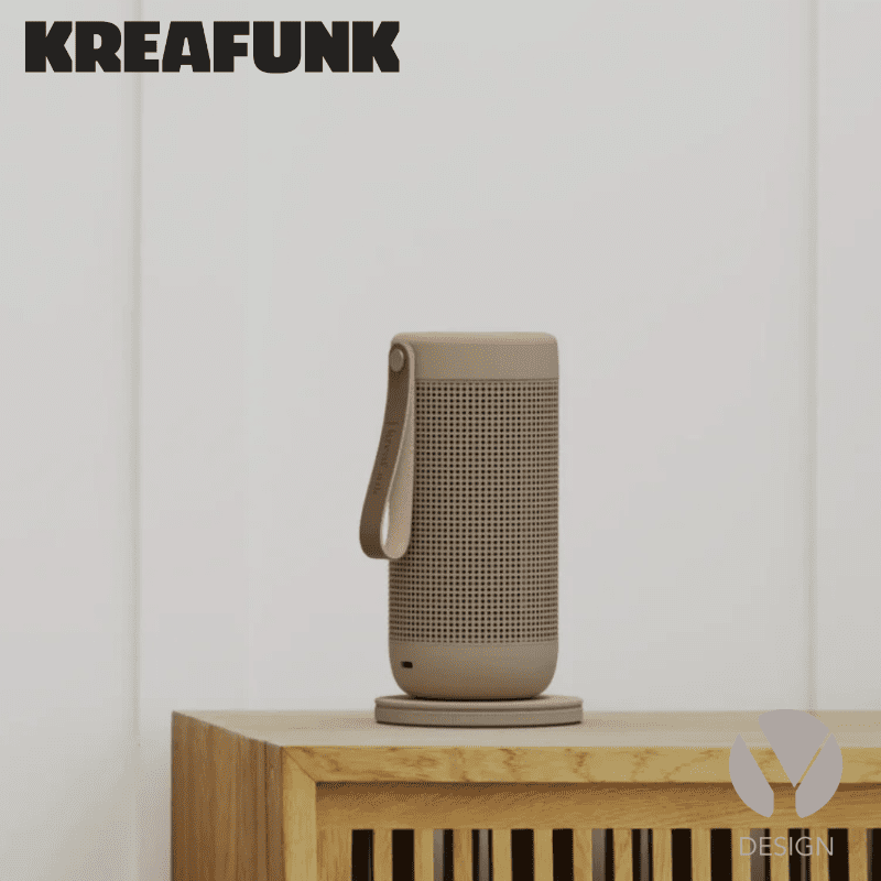Denne højtaler fra Kreafunk spiller lyden ud i alle 360° af rummet – genialt, så du kan høre lige godt uanset, hvor i rummet du befinder dig.
