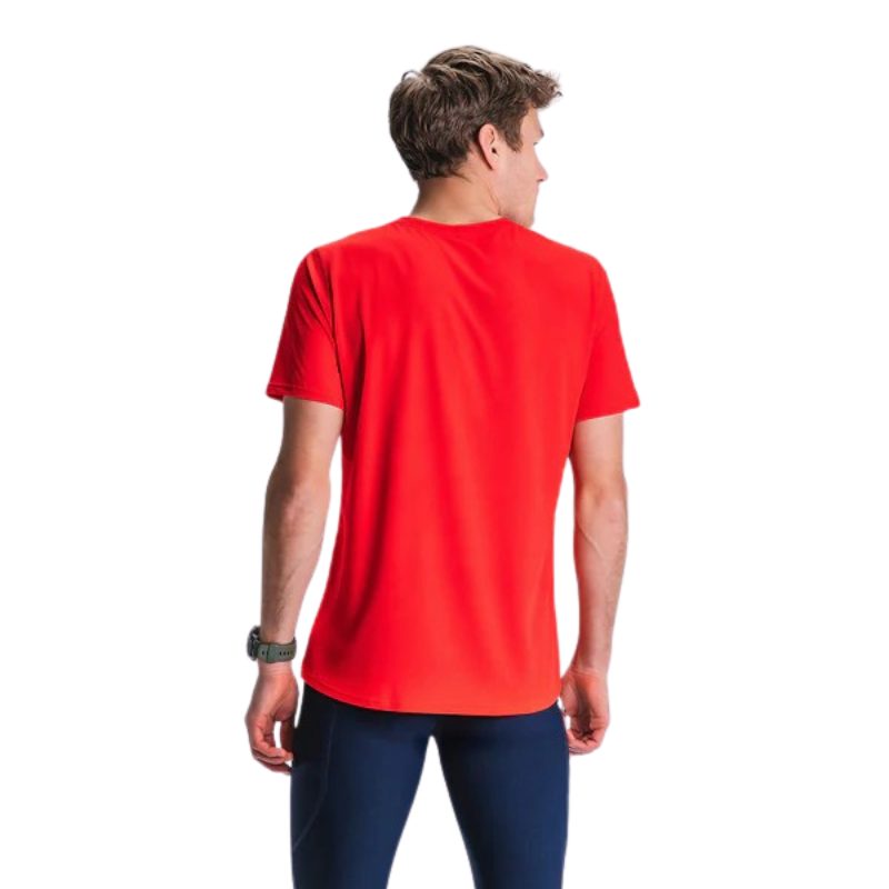 Den mekaniske strækbarhed i stoffet sikrer en god pasform uden brug af elastiske fibre, hvilket betyder, at trøjen bevarer formen og funktionaliteten vask efter vask. Det løstsiddende snit er skræddersyet til mænd og giver optimal bevægelsesfrihed på løbeture, i fitness eller til daglig aktivitet.