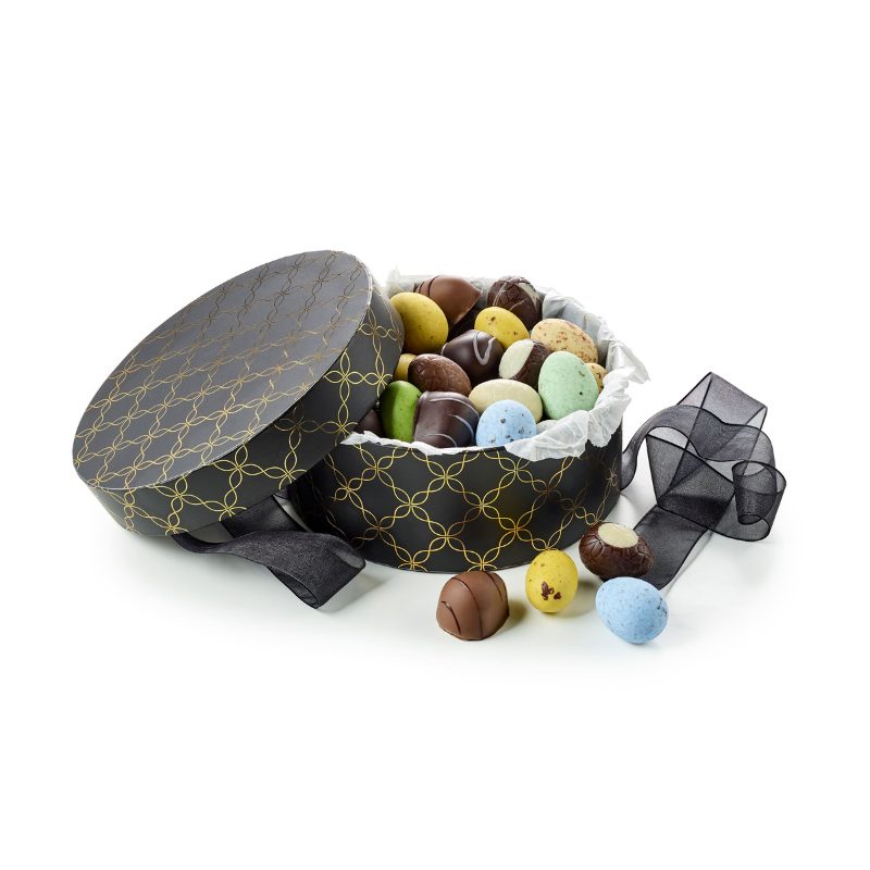 En eksklusiv påskeæske med et varieret udvalg af marcipanæg, belgiske fugleæg, luksusæg og gourmetæg. En flot og indbydende gave, der byder på både klassiske og raffinerede smagsoplevelser – perfekt til påskehygge eller som gave.
