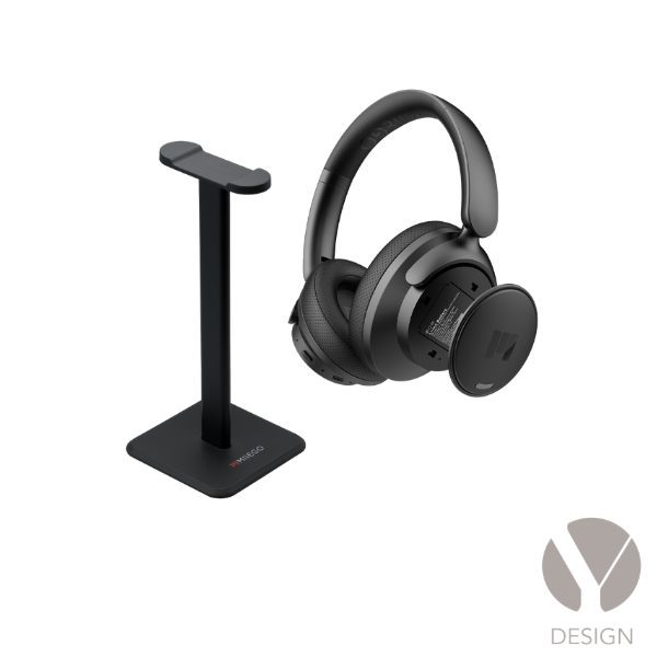 Eksklusiv sampak med de lækre trådløse MOOVE 65 LUX høretelefoner med aktiv støjreduktion inklusiv medfølgende hardcase-etui samt praktisk bordstander som passer perfekt til skrivebordet.