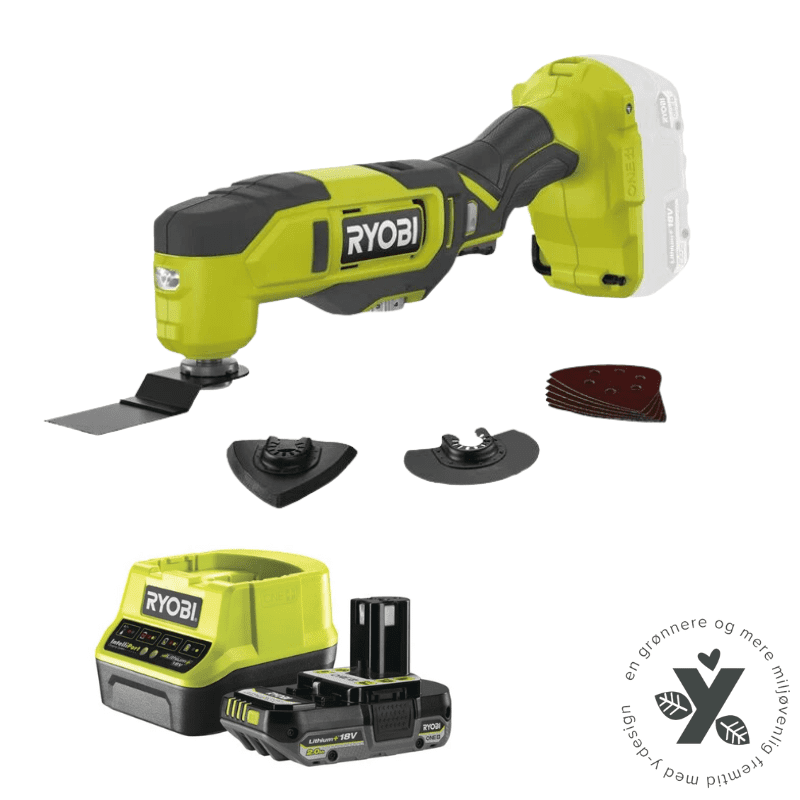 Multiværktøj ONE + 18V. Let multiværktøj til en lang række opgaver; skærer, save og slibning af træ, plast eller metal. Variabel hastighed på 0-20.000 omdr./min. Og et lavt vibrationsniveau. Svingningsvinkel på venstre / højre 3,0°. Led lys. Kompatibel med tilbehør fra forskellige mærker (inklusive Starlock og Starlock Plus).