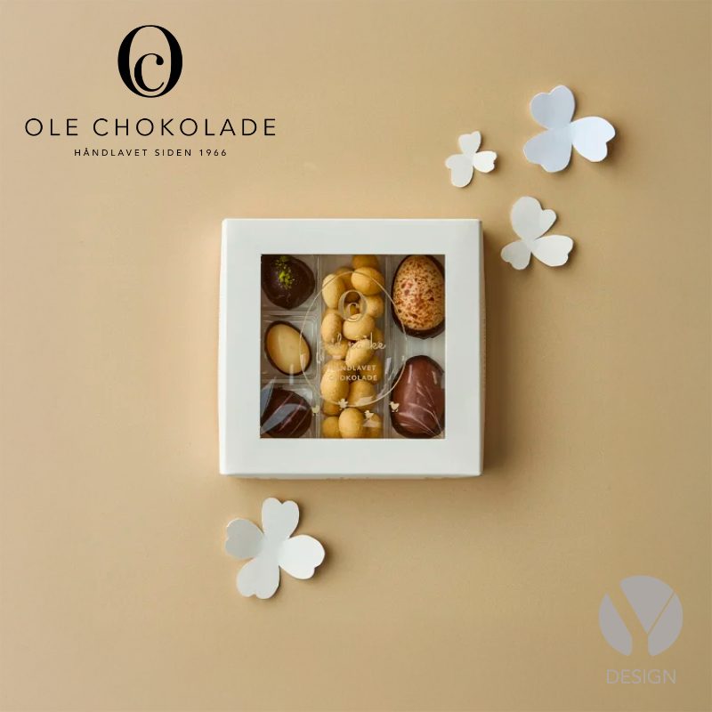 Gaveæsken indeholder 2 mesteræg, 3 delikatesseæg og 50 gr. passionsmandler.